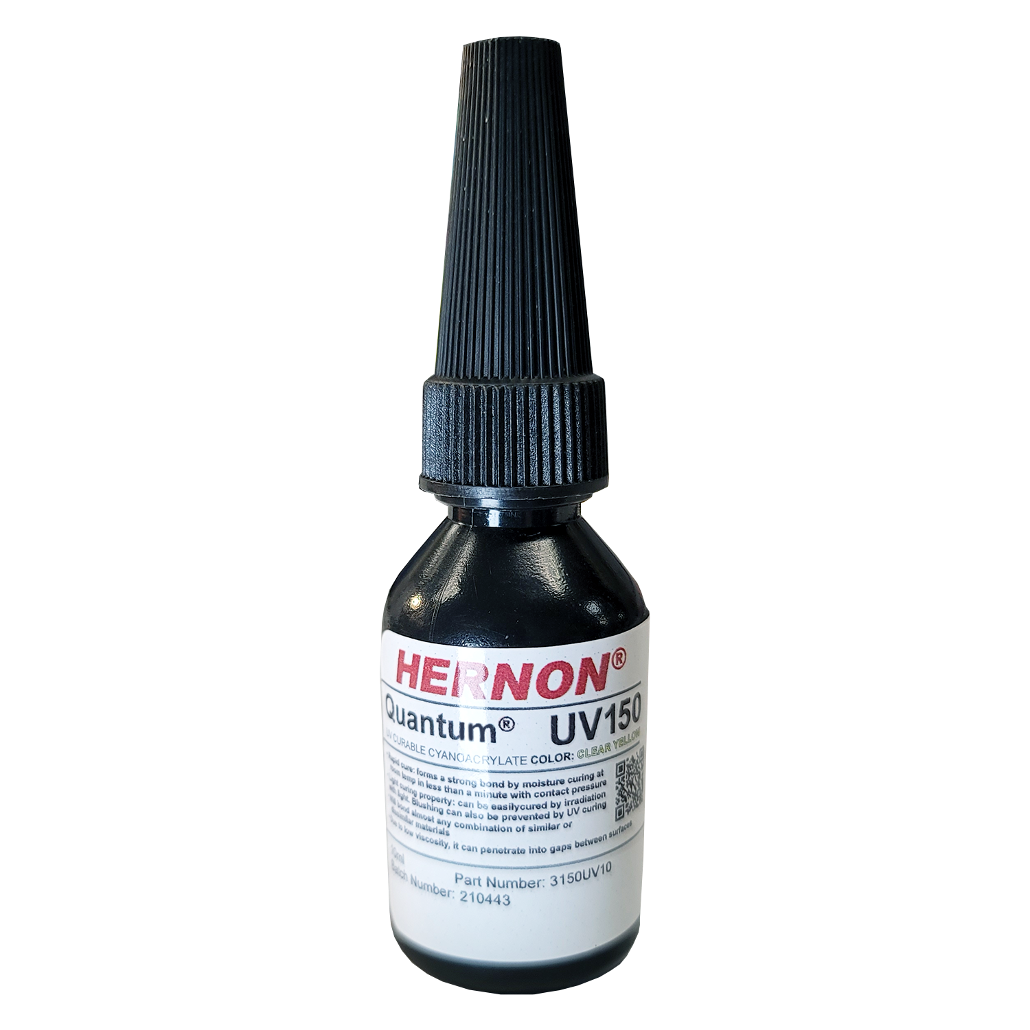 Quantum® 150 UV is a single component, solventless, room temperature curing cyanoacrylate adhesive with light curing property. The presence of surface moisture and/or light (UV or Visible light) commence the cure of the adhesive. Quantum® 150 UV develops handling strength within seconds and full functional strength within minutes. Quantum 150 UV can bond a wide variety of surfaces including thermoplastics, elastomers. Product Benefits: • Rapid Cure: forms a strong bond by moisture curing at room temperature in less than a minute with contact pressure. • Light curing property: can be easily cured by irradiation with light. Blushing can be also prevented by UV curing. • Surfaces: will bond almost any combination of similar or dissimilar materials. • Easy Use: single component feature, eliminates any mixing. • Due to low viscosity, it can penetrate gaps between surfaces.