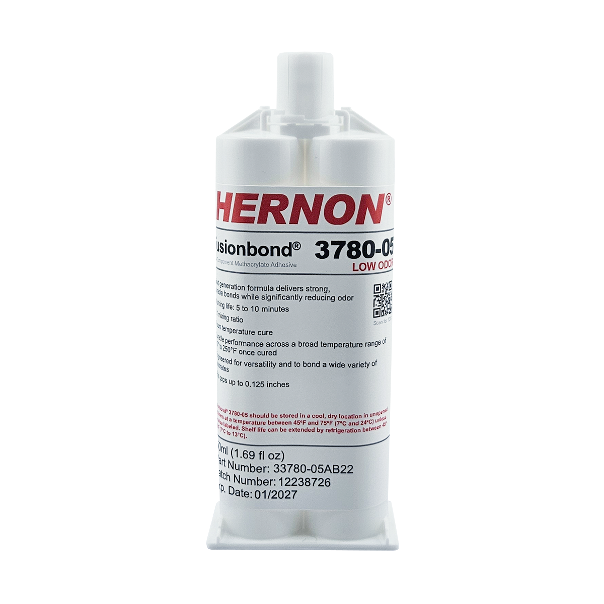 Fusionbond® 3780-05 is a high-performance, two-component methacrylate adhesive that cures at room temperature with a 1:1 mix ratio. Engineered with advanced technology, this next-generation formula delivers strong, durable bonds while significantly reducing odor for improved user experience. Fusionbond® 3780-05 offers a working life of 5 to 10 minutes. Once cured, it delivers durable performance across a broad temperature range of -67°F to 250°F. Designed for versatility, Fusionbond® 3780-05 effectively bonds a wide range of substrates such as various metals and some plastics such as acrylic and fiberglass. Product Features: • Formula fills gaps up to 0.125 inches • High shear strength with high resistance to environmental factors • Low odor formula